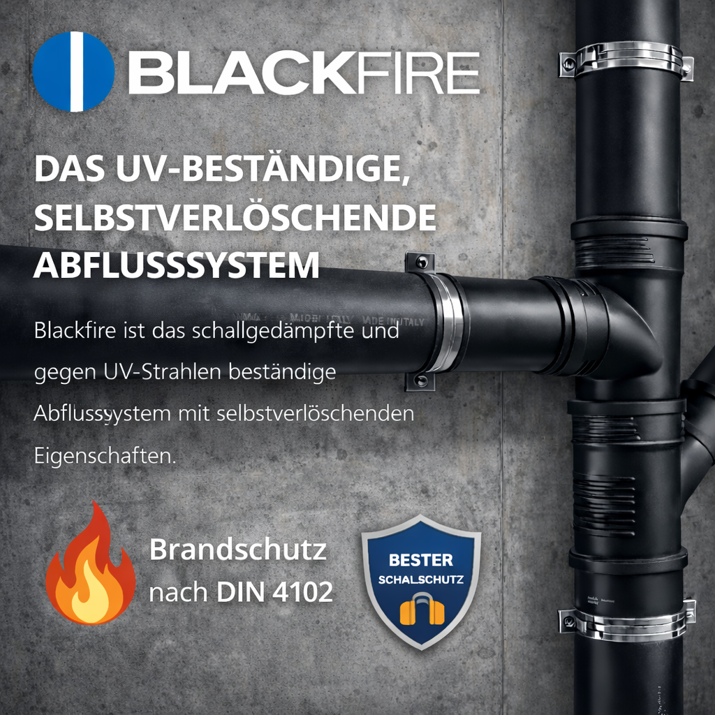 Das Blackfire® System ist ein Stecksystem, das sich durch einfache und schnelle Installation auszeichnet. Neben diesen Eigenschaften erzielt Valsir Blackfire® gute Ergebnisse hinsichtlich des akustischen Komforts und der Feuerbeständigkeit nach DIN 4102 B1.