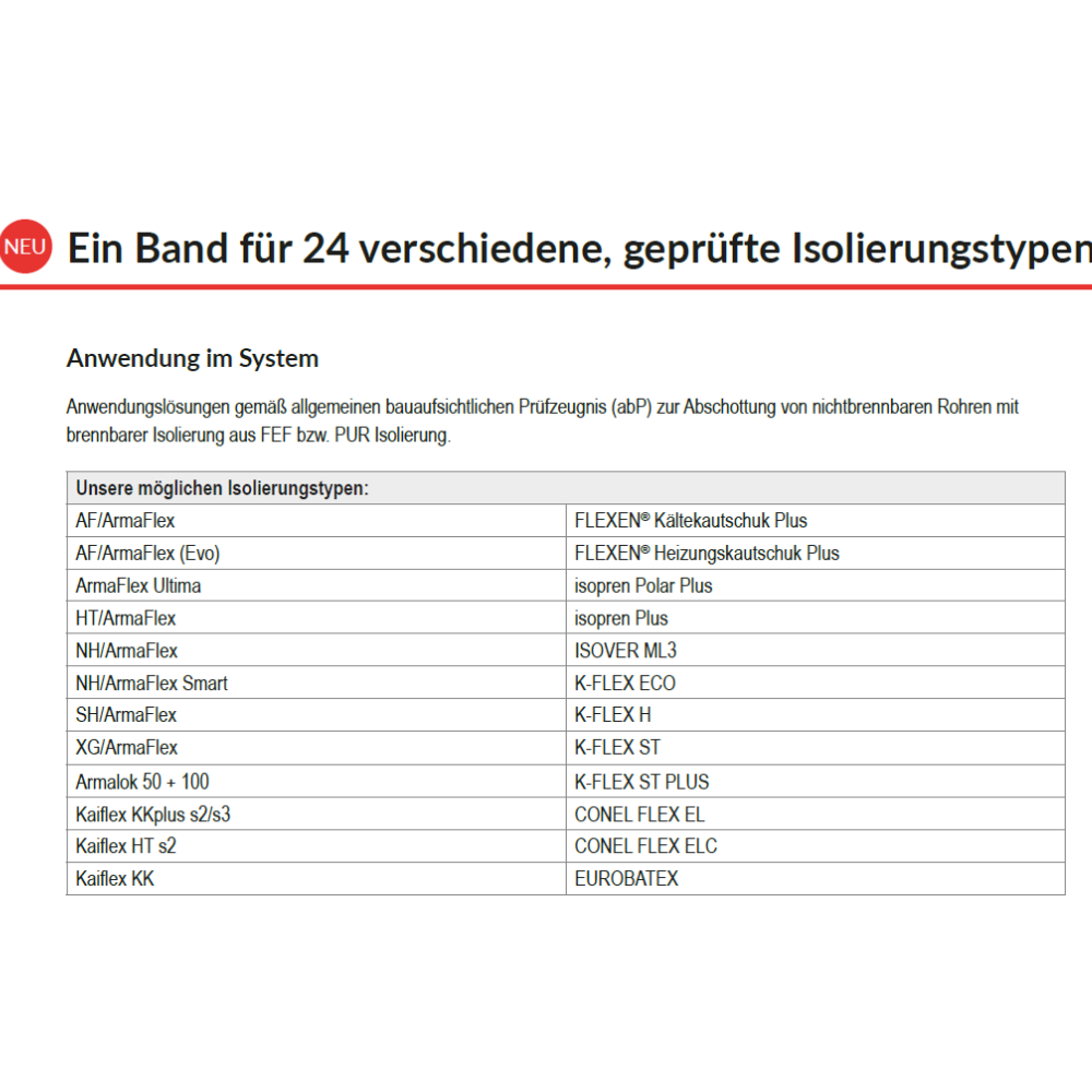 Geeignet für die Abschottung aller marktüblichen Elastomerschaum Dämmungen (FEF)