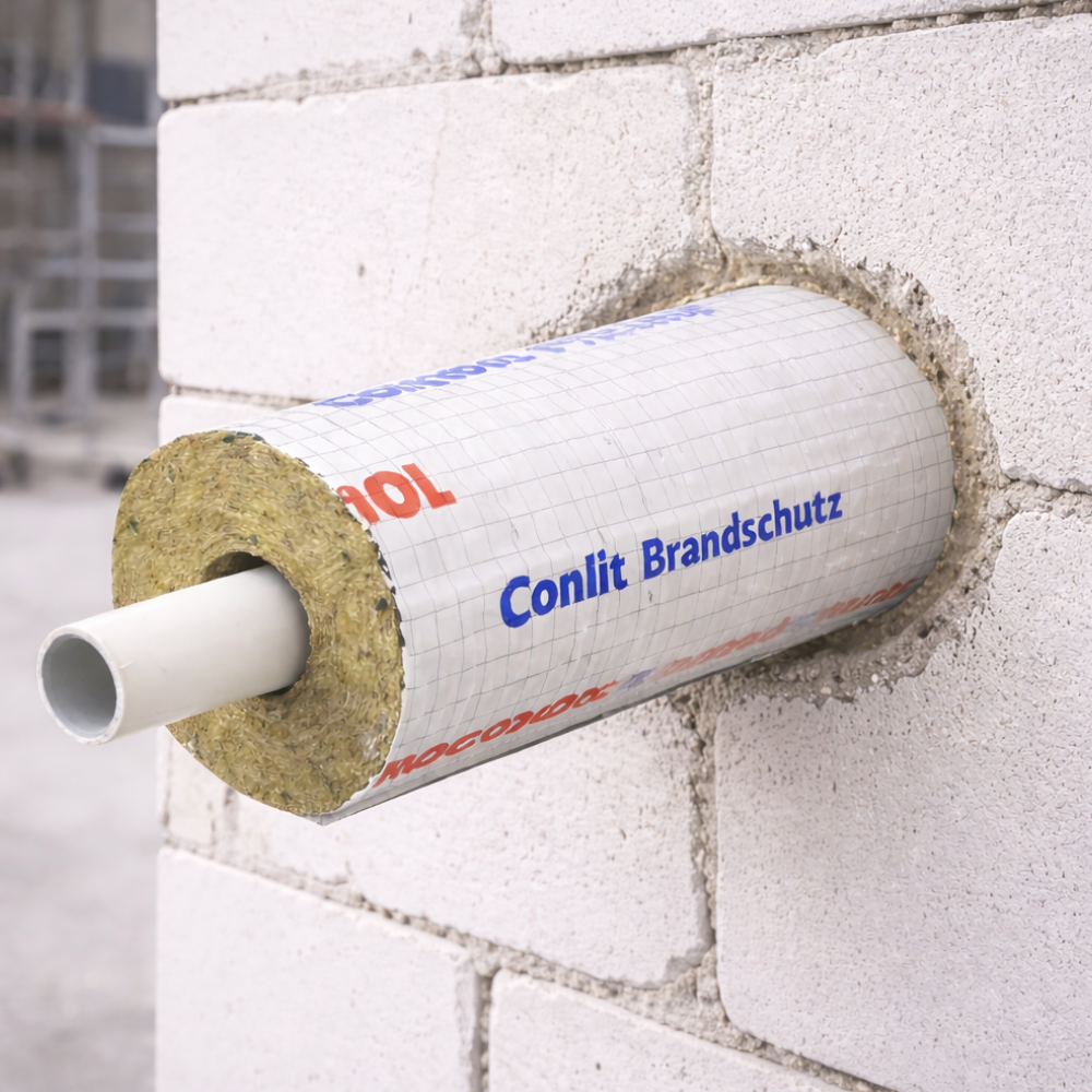 Rohrabschottungen R30 bis R120 von brennbaren und nichtbrennbaren Rohrleitungen bei Massivwänden und -decken sowie leichten Trennwänden.