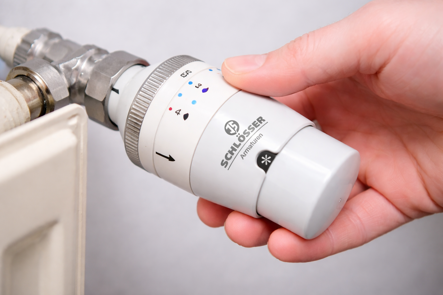 - Thermostatdrehkopf für die Einstellung der Raumtemperatur am Heizkörper