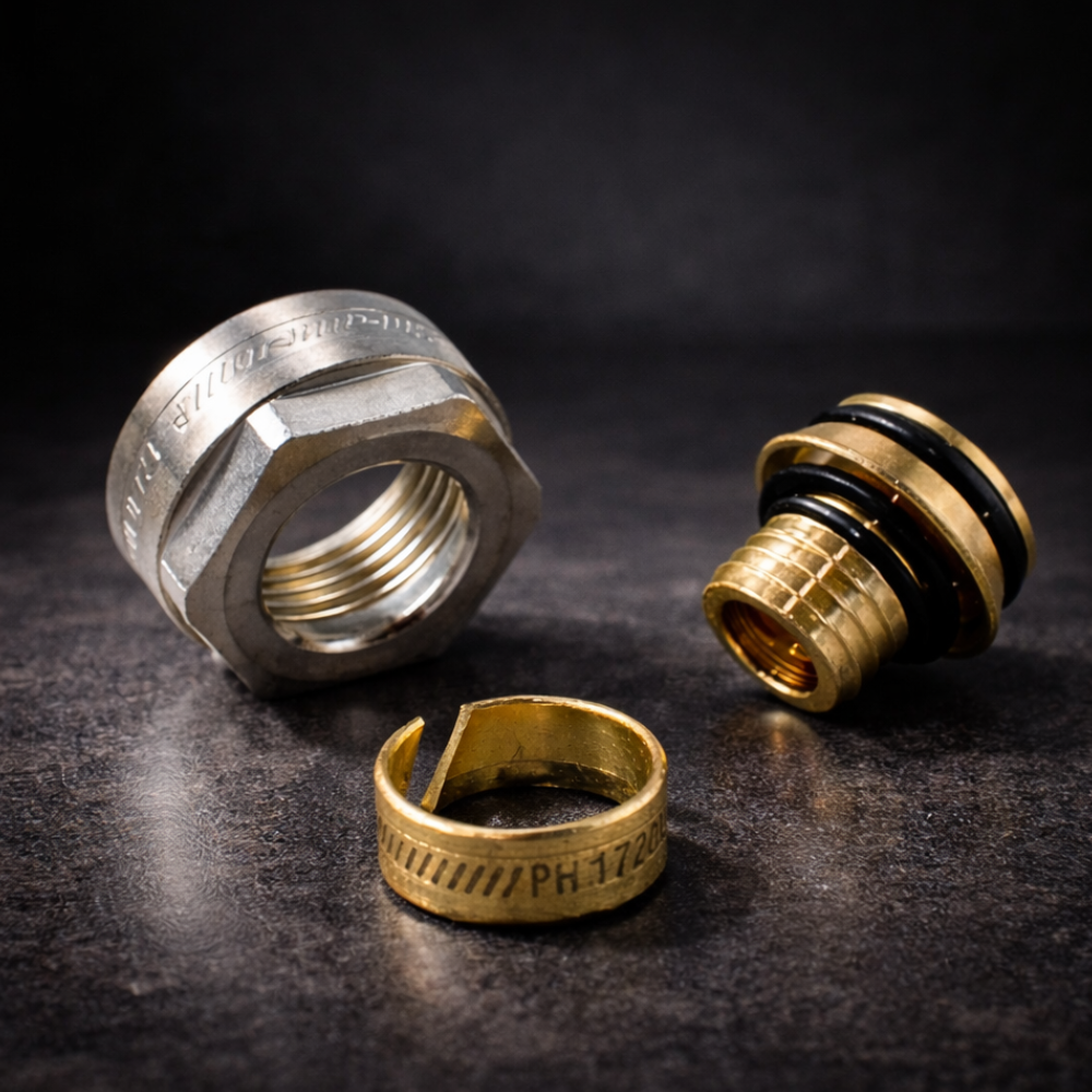 Das Eurokonus Schraubsystem eignet sich zur sicheren und einfachen Installation von Mehrschichtverbund-, Kunststoff- und Kupferrohren.
